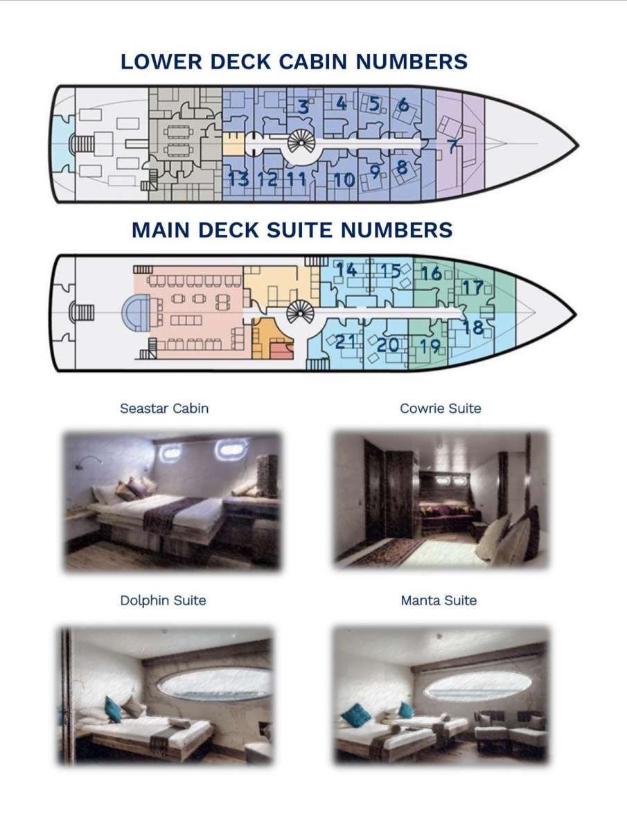 Роскошные 50-метровые судна «Scubaspa Ying» и «Scubaspa Yang» специально создавались как самые большие на Мальдивах яхты для длительного пребывания: каждая из яхт может разместить 40 гостей в 19 комфортабельных каютах.