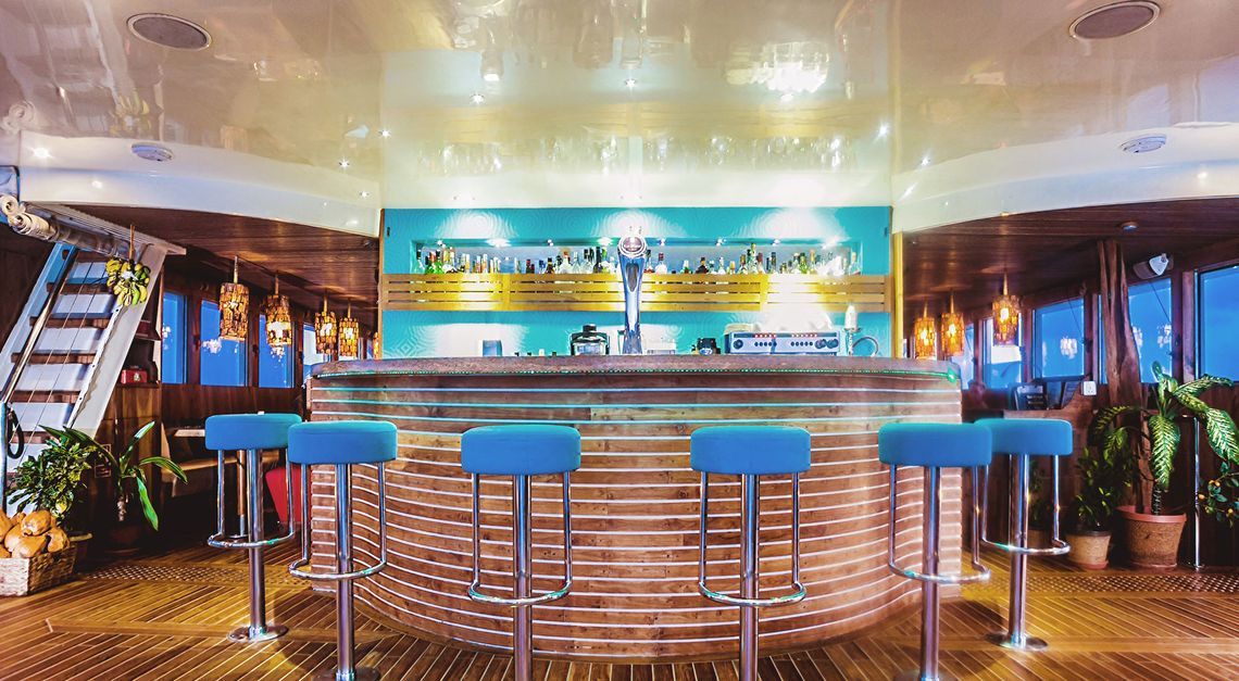 Также, на борту отличный выбор алкогольных напитков. Вы можете посмотреть винную карту и барное меню. Если Вы выбрали пакет СПА, это вовсе не будет означать, что Вы не сможете обучиться дайвингу. За отдельную плату можно пройти тот или иной курс дайвинга с опытным инструктором (требуется предварительный заказ). Если дайвинг никак не относится к сфере Ваших интересов, Вы всегда сможете найти себе что-то по душе: можно взять маску и ласты и заняться снорклингом, посидеть в шезлонге на палубе или поплавать в тёплых бирюзовых водах. Или заказать дополнительные СПА-процедуры к своему пакету. Как видите, на борту чудесной Scubaspa Ying 6* скучать не придётся. Здесь каждый найдёт себе место для отдыха и восстановления сил!