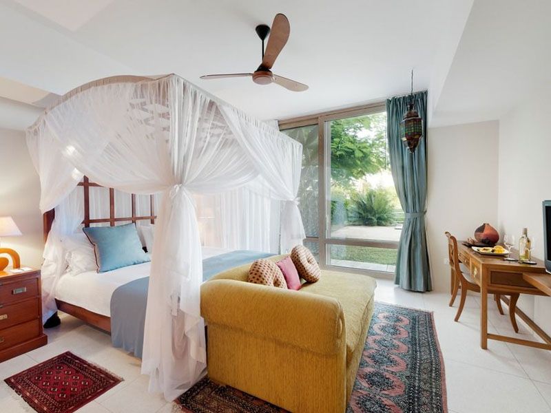 - Grand Suite Zanzibar (117 кв. м): уютные люксы с балконом, гостиной с обеденной зоной, спальней с кроватью king-size, ванной комнатой с ванной, душем на открытом воздухе. Дополнительное оснащение и VIP-услуги: DVD-плеер в номере, отдельная стойка регистрации, доступ в эксклюзивную гостиную, где по утрам подают континентальные завтраки, закуски и прохладительные напитки в течение дня. Данные номера расположены на втором этаже. С балконов открывается вид на океан (частичный или прямой).
