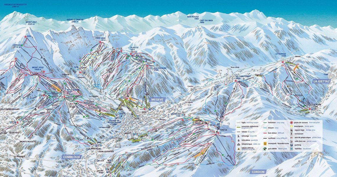 Самые крутые и сложные спуски предлагают районы Мон-Жоли (Mont Joly) и Мон-Жу (Mont Joux), «чёрные» и «красные» спуски есть в Кот-2000, но они не очень длинные.
