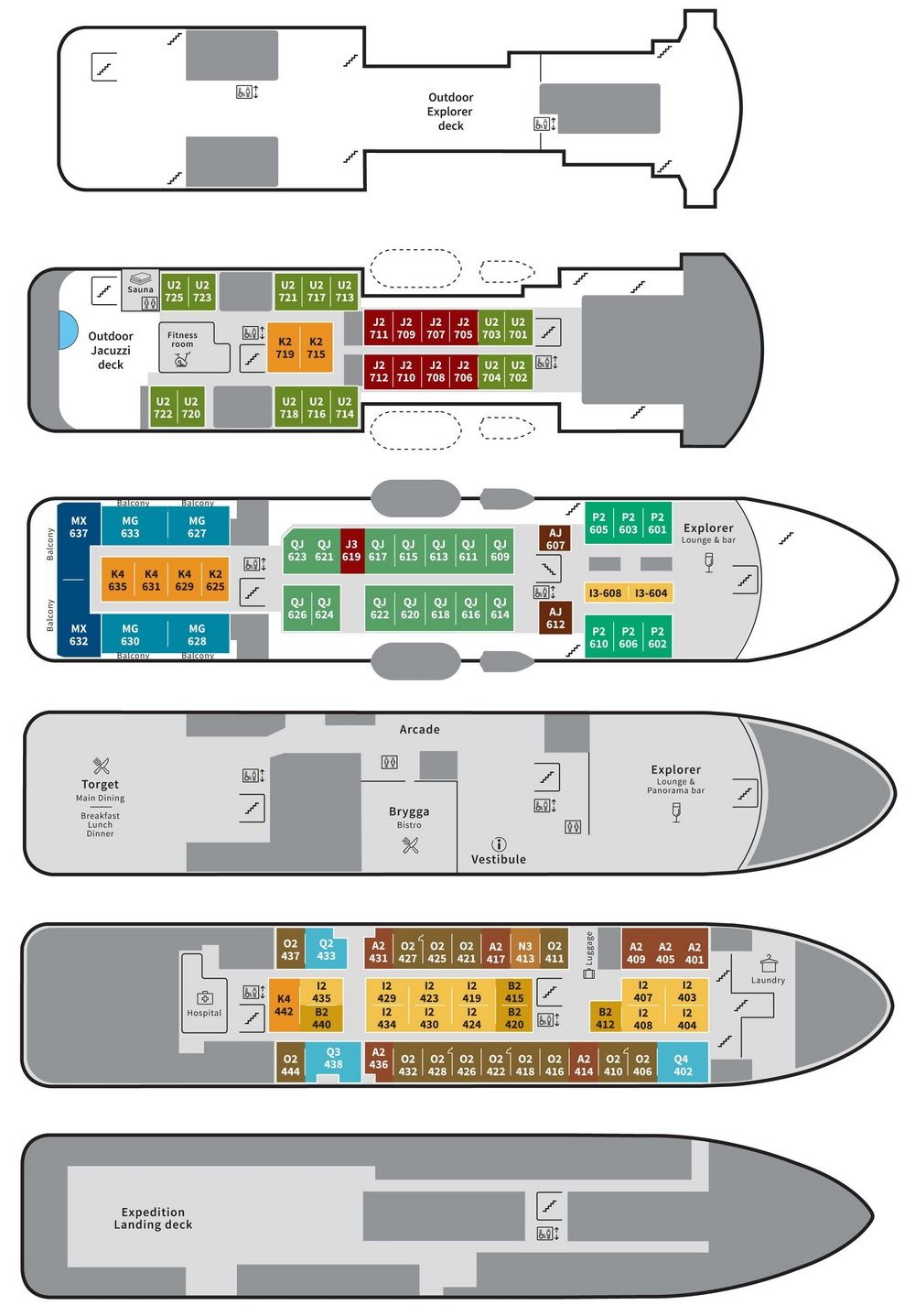 Корабль ледового класса, технически оснащенный для экспедиционных круизов. Современное, экологичное, маневренное судно адаптировано для экспедиционных круизов в арктических водах. Отделка лайнера выполнена в современном скандинавском дизайне.