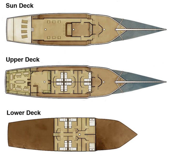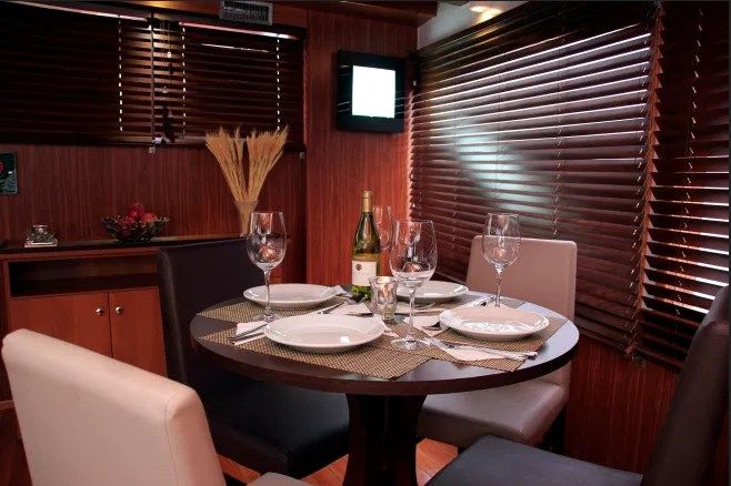 M/V Desafio с 12 двухместными каютами, каждая с кондиционером, собственной ванной комнатой с душем, рестораном и баром, «является лучшей лодкой в своем классе, плавающей в этих водах».