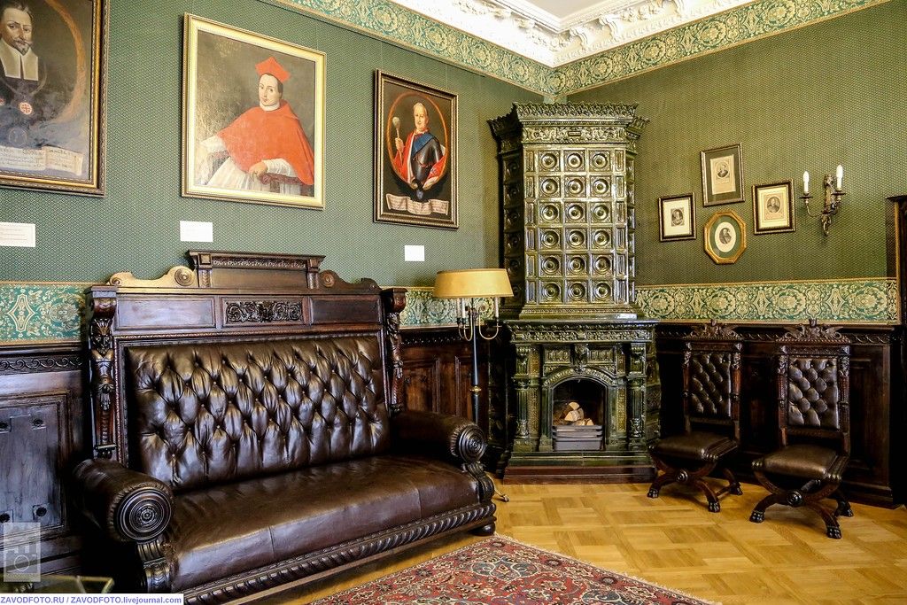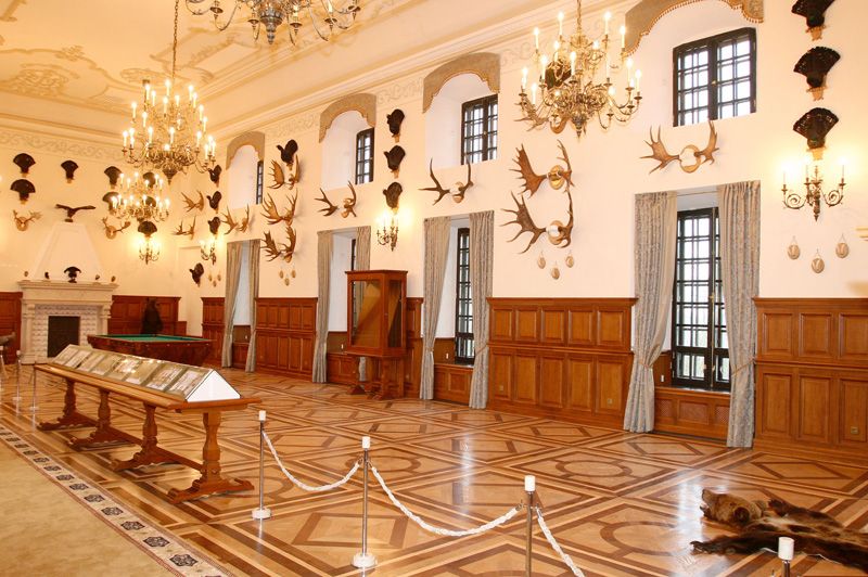 Внешне дворец выглядел всегда очень романтично: монументальная постройка с гармоничными башнями разного размера, поднятая над водой, тонет в зелени деревьев.
