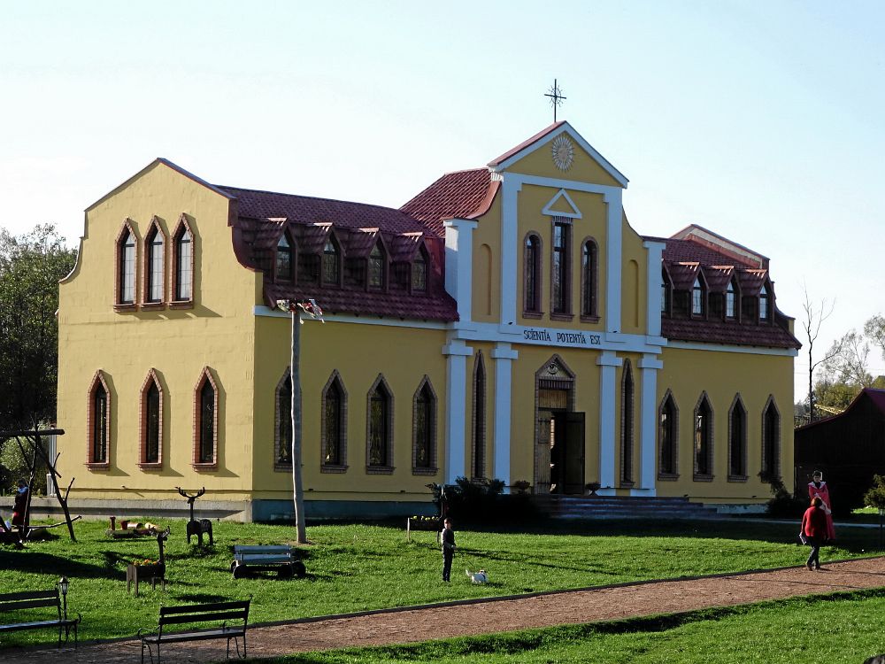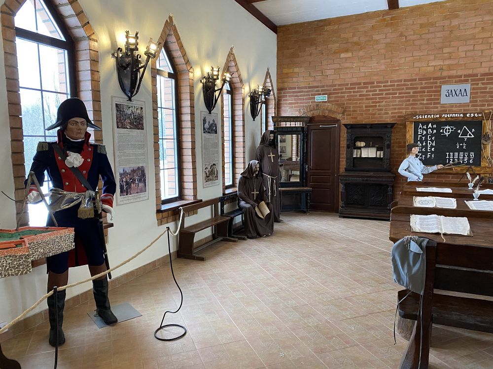 В ярком здании иезуитского Коллегиума — экспозиция истории образования и просвещения на белорусских землях. Здесь узнаем, как учлись наши предки и увидим галерею скульптур великих людей белорусской истории — от Льва Сапеги до Максима Богдановича.