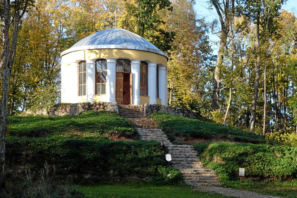 Часовня, выполненная в виде античного храма-ротонды, расположенного на вершине рукотворного пирамидального 30-метрового холма. Некогда в центре ротонды был установлен алтарь, увенчанный распятием. Купол и стены храма были украшены дивными фресками, расписаны талантливой рукой мастера замысловатыми узорами в небесных тонах.