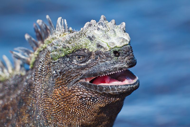 Пунта-Эспиноса В местечке Пунта-Эспиноса, среди мангровых лесов, тянущихся в море, застывшие черные потоки лавы служат пристанищем для самой крупной в мире колонии морских игуан, а также для пеликанов и нелетающих бакланов.