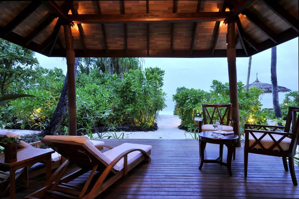 Beach Bungalow (97 м²). Береговые просторные виллы с прямым выходом на пляж. В номере: кондиционер, потолочный вентилятор, электронный сейф, телефон, LCD телевизор, кабельное телевидение, джакузи, ливневый душ, доступ в Интернет, мини-бар, набор для приготовления чая и кофе, шезлонги