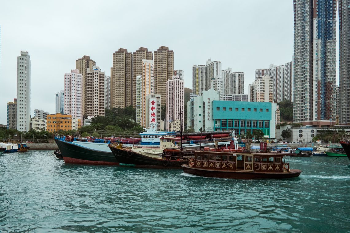 В доке туристам предлагают прокатится на сампане. Моторный сампан, проходя мимо причалов и стоящих на якоре лодок, дает возможность увидеть будничную жизнь трудолюбивых рыбаков и их семей, живущих прямо на лодках. Огромный мегаполис, бурлящий рядом, не коснулся их традиционного быта, здесь все, как и 100 лет назад, когда в сотнях джонок и сампанов жили тысячи, если не десятки тысяч представителей так называемой «расы лодок». Это были люди из народностей танка и хокло. В 1980-гг. в Абердине были построены жилые многоэтажки в связи с планами правительства переселить туда представителей народа хокло, живущих в плавучих довах в проливе. Но многие из них до сих пор предпочитают традиционный уклад жизни. В бухте стоят сотни рыбацких катеров и лодок, здесь же можно увидеть плавающий рынок. Мужчины чинят сети и развешивают рыбу вялиться на солнце, женщины стирают и моют посуду на палубе. Тут же в огороженном пространстве играют дети. Однако достижениями технического поргресса многие из них не пренебрегают, поэтому их плавучие дома оборудованы холодильниками, стиральными машинами, кондиционерами и стутниковыми телевизорами. В бухте Абердин около 5-6 тысяч человек живут на воде.