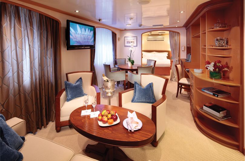 Внутренних кают нет, все 54 каюты - внешние, с видом на океан. Каких-то специальных привилегий нет. Вернее, есть привилегии для всех пассажиров! Отличия только в размере кают и количестве ванных комнат. Но в остальном, всем пассажирам предоставляются: - комплекты бельгийского постельного белья из 100%го хлопка;