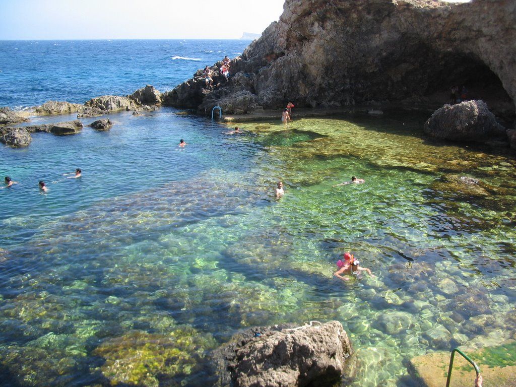 Одно из прекраснейших мест на Мальте! Ghar Lapsi нельзя назвать городом, даже в мальтийском масштабе, его также нельзя назвать пляжем, но, несмотря на всё это, он похож и на то и на другое! Он расположен практически на самой южной точке острова. Сюда ходит 94-й автобус из города Siggiewi, но если вы поедете на машине, то парковочных мест хоть отбавляй, причём все они абсолютно бесплатны. Здесь особняком стоит здание допотопного ресторана, рядом разбит небольшой сквер (ну, сквер – это громко сказано для пары деревьев и пары лавочек, но всё же), а пологий пандус спускается к воде. Море вдаётся в берег двумя бухточками – одна прямо при спуске, другая левее, к ней вы пойдёте вдоль колеи, по которой перетаскивают лодки. Несмотря на то, что обе бухты очень живописны и уютны, вторая (левая) выглядит как-то симпатичнее, вероятно потому, что здесь меньше народу, больше лестниц и есть где уединиться. Да-да, это не шутка, даже в солнечный день вы сможете найти здесь такое место, где вас никто не потревожит – береговая линия представляет собой отвесную скалу, в которой тут и там прослеживаются аккуратные ниши, да и огромные камни, наваленные у берега, легко могут послужить укрытием от косых взглядов соседей.