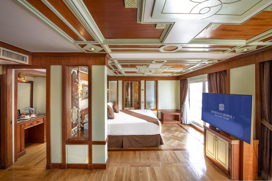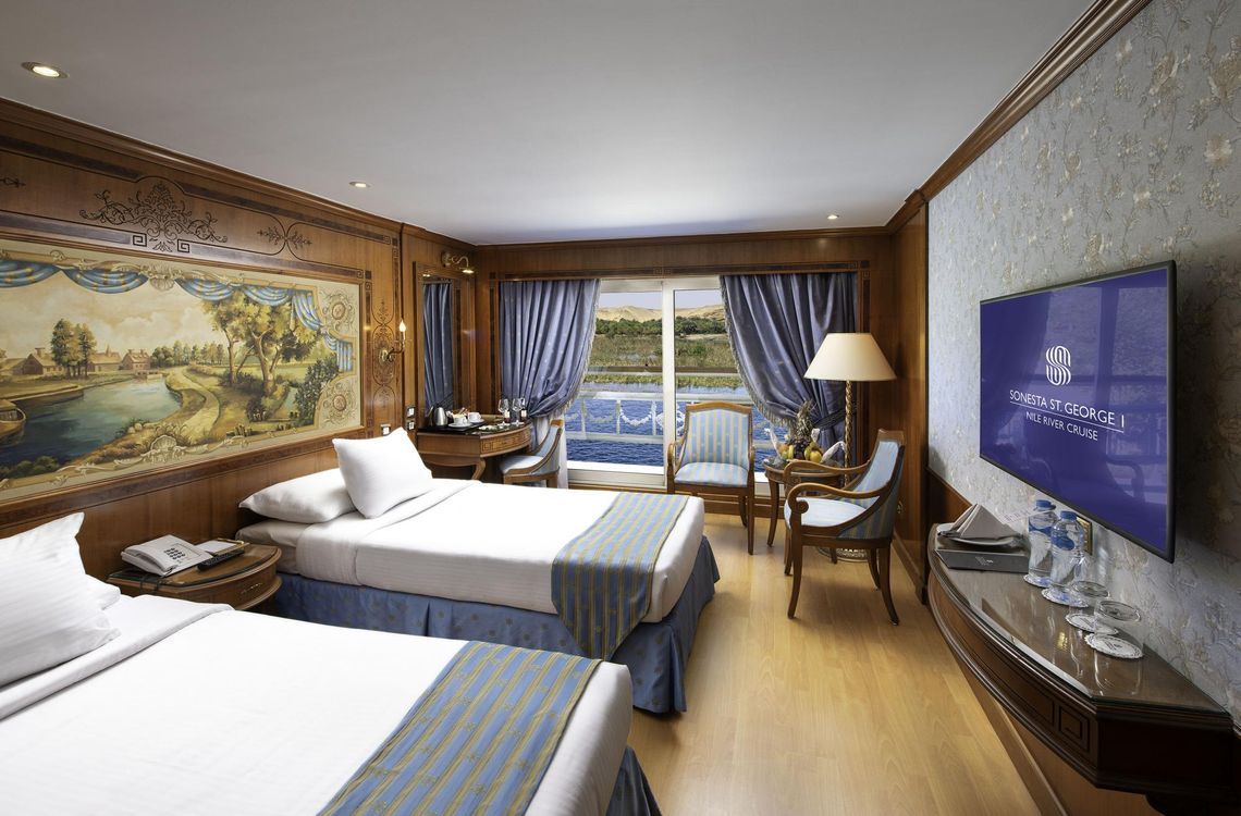 На корабле Sonesta St. George I 5* - 47 кают делюкс, 9 президентских сьютов и 1 Royal сьют. Площадь кают от 22 до 66 кв. м. Все каюты имеют душ, джакузи, туалет, кондиционер, сейф, две раздельные или одну общую кровать, окна (открываются).