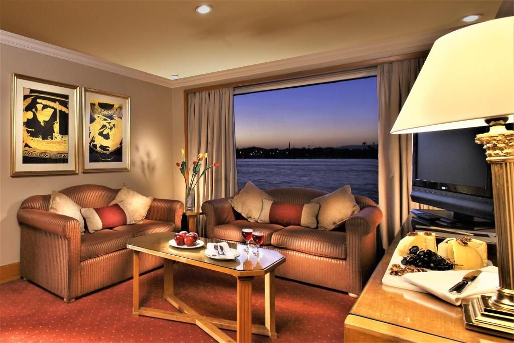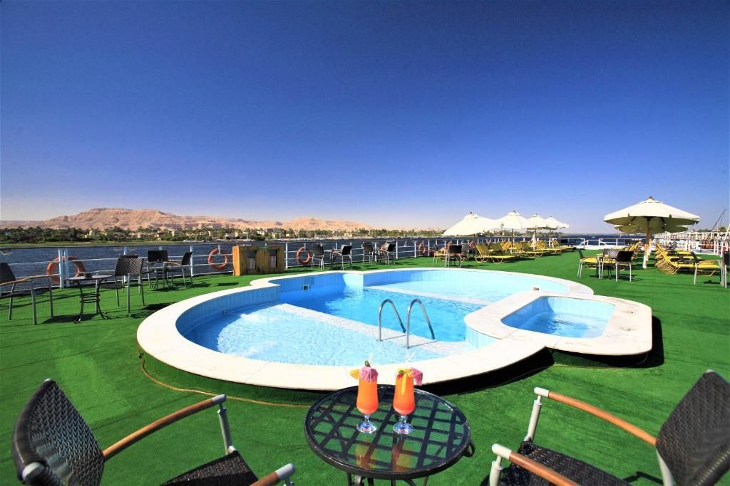 Для любителей роскоши и классики вы обязательно влюбитесь в наш 5-звездочный круизный лайнер на Steigenberger Regency 5* deluxe компании Steigenberger Hotels and Resorts. Исследуйте секреты цивилизации фараонов с совершенно новой точки зрения, и пусть начнется волшебство. Из кают и люксов круиза с большими панорамными раздвижными окнами, выходящими на реку Нил, мы обещаем вам незабываемый утренний вид на семь дней. Все каюты оснащены самыми современными удобствами, которые позволят вам чувствовать себя как дома. В течение дня возьмите книгу из библиотеки круиза и наслаждайтесь чтением перед видом на Нил или хорошей игрой в шахматы в развлекательном уголке со своими партнерами по путешествию. Проведите радостные моменты в открытом бассейне или джакузи и потягивайте лучшие напитки из бара у бассейна. Вы также возобновите свою ежедневную тренировку в тренажерном зале круиза. Насладитесь закатом в панорамном баре с видом на Нил или выпейте горячий напиток в классическом баре с камином в английском стиле. В круизе также есть местный ресторан, готовый удовлетворить ваши вкусовые рецепторы.
