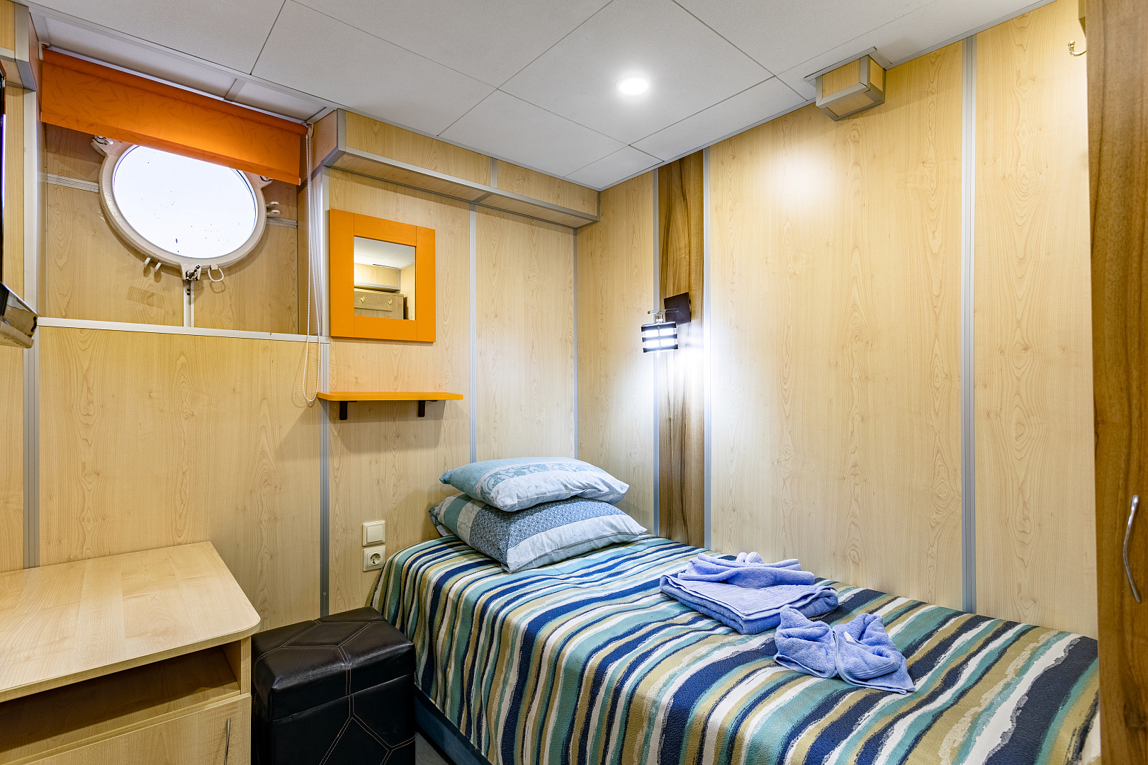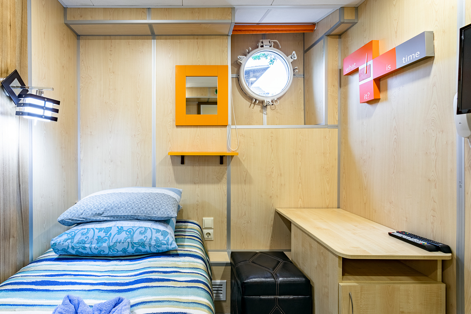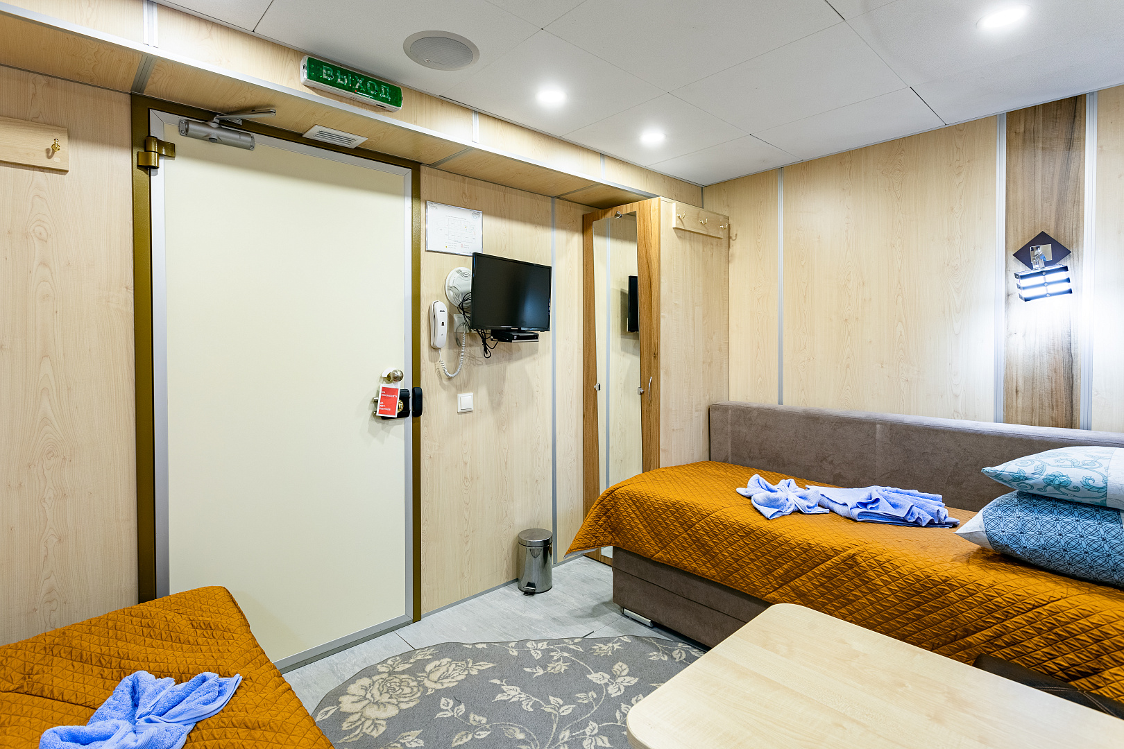 Современные и экономичные каюты расположены на Нижней палубе: 2 каюты Двухместные и 4 Одноместные.