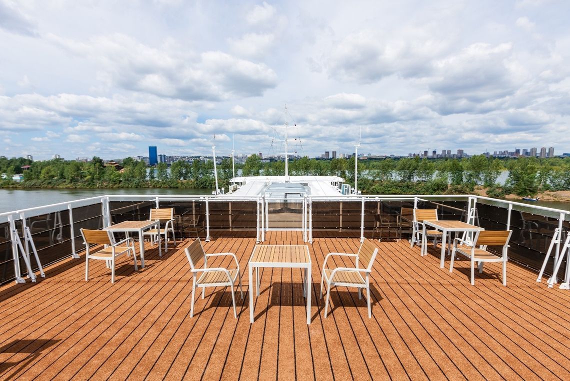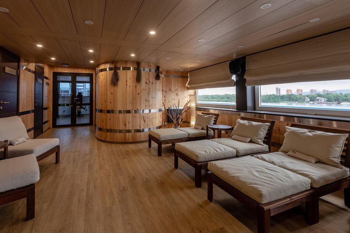 - на солнечной палубе имеется SPA-зона с джакузи, массажным кабинетом, фито-баром и фитнес-залом, а также прогулочный променад, с которого так приятно любоваться красотами Сибири и реки Енисей.