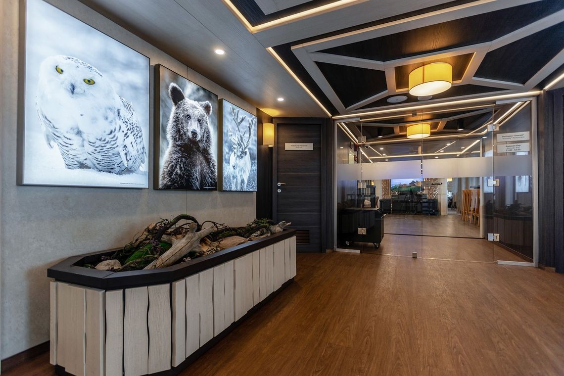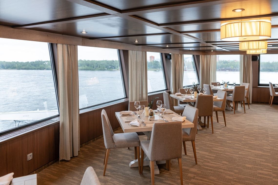На теплоходе предусмотрен большой ресторанный комплекс со стильными дизайнерскими интерьерами. Традиционные блюда от шеф-повара, сибирская кухня, сибирский бар и винная библиотека с премиальной винной картой. В специальном рыбном ресторане «Сatch of the day» большой выбор свежей рыбы и деликатесов. Здесь также приготовят ваш улов по лучшим национальным рецептам.