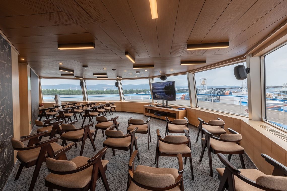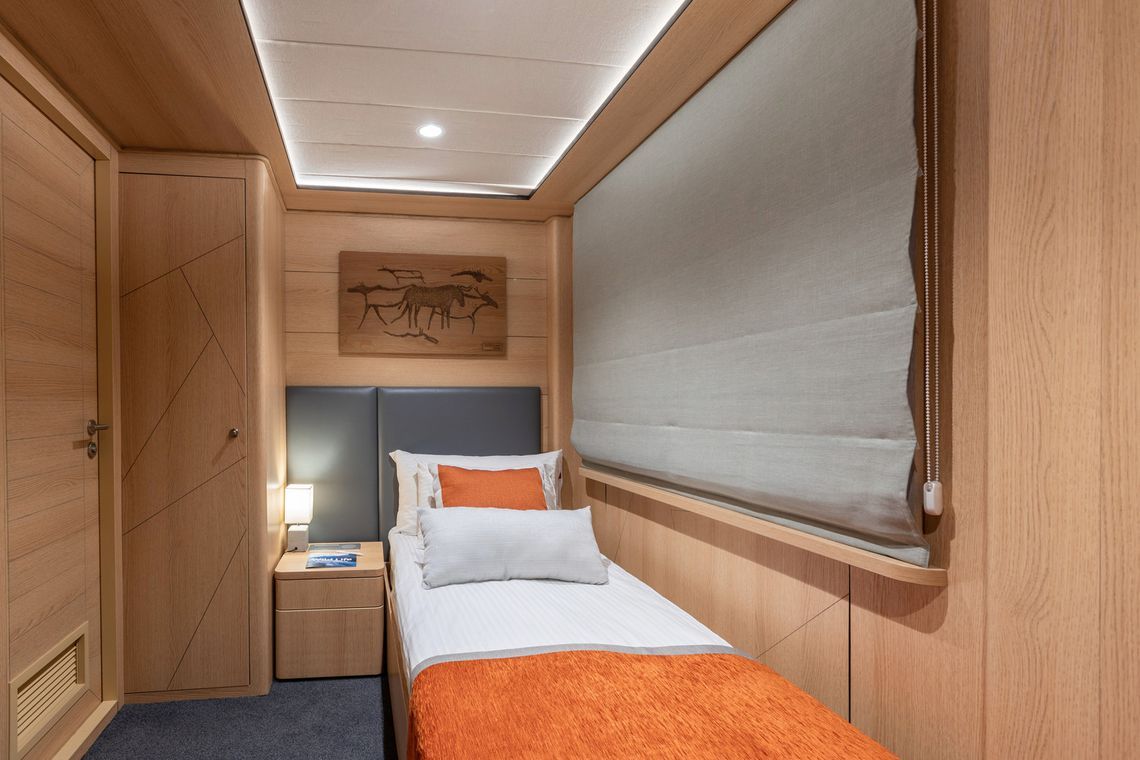 - 49 стильных кают со всеми удобствами, рассчитанных на размещение до 110 пассажиров;