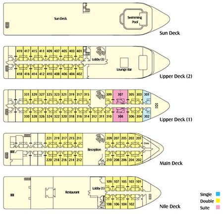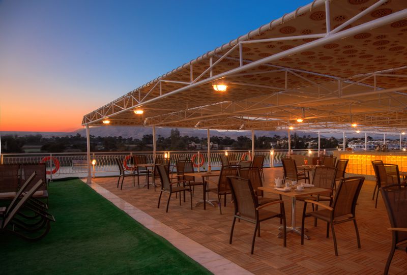 Круизный лайнер STEIGENBERGER MINERVA 5* DELUX курсирует между Асуаном и Луксором и располагает роскошными каютами с панорамным видом на Нил. К услугам гостей открытый бассейн с террасой для принятия солнечных ванн, тренажерный зал, интернет и круглосуточная стойка регистрации. Это комфортабельный пятизвездочный круизный теплоход класса Люкс. Бассейн и бар у бассейна расположены на просторной солнечной палубе, где можно отдохнуь под зонтиками или позагорать на шезлонгах. Сувенирный магазин на борту всегда в распоряжении гостей, побаловать себя массажем всего тела с помощью душистых и шелковистых кремов можно в массажном салоне, а салон красоты позволит выглядеть сногсшибательно на Гала-Ужине.