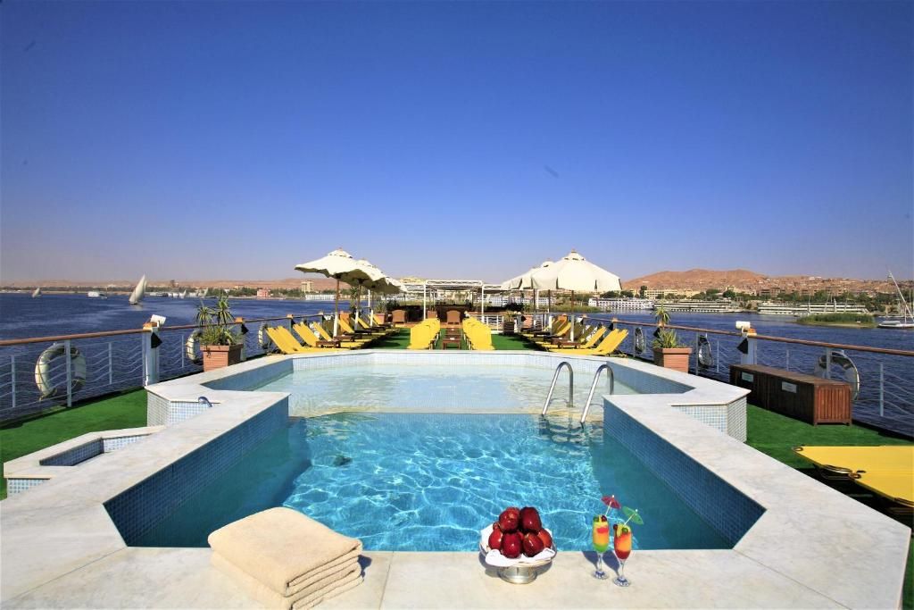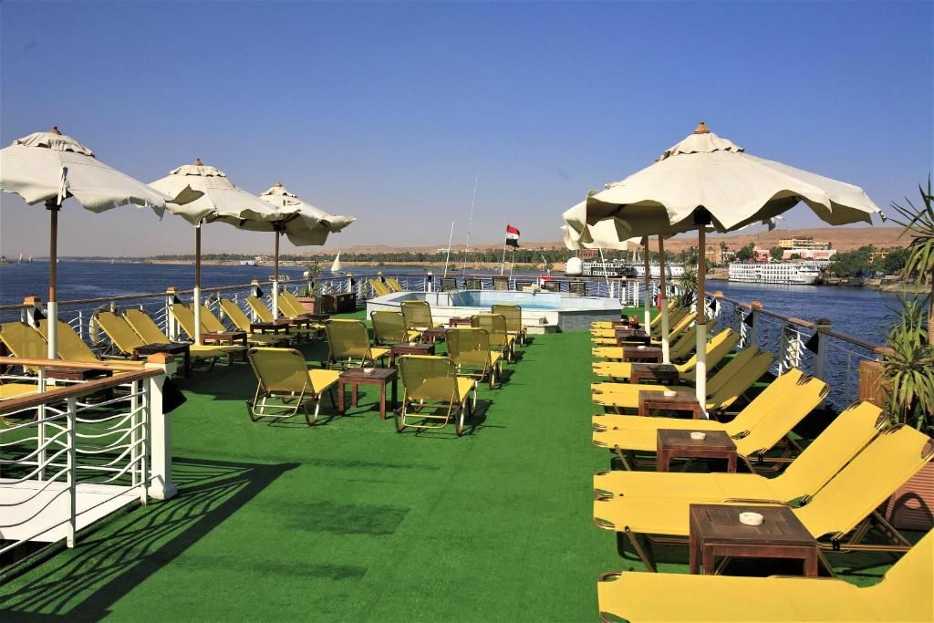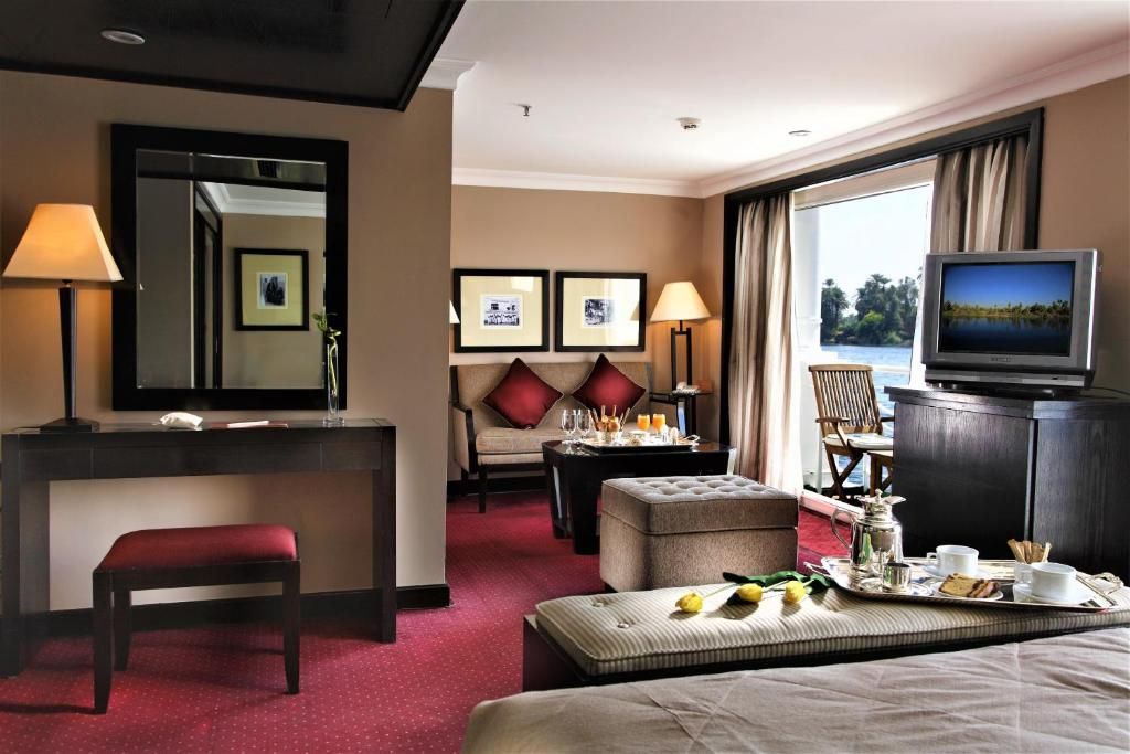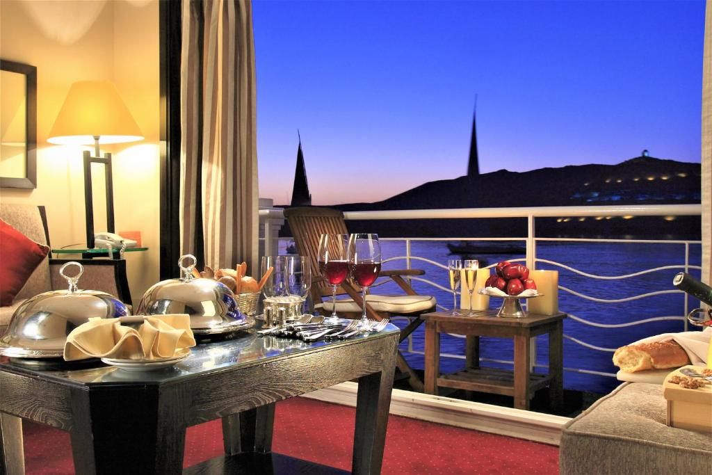 Плавание на 5-звездочном круизном теплоходе Steigenberger Senator компании Steigenberger Hotels and Resorts - это радостное приключение - наслаждайтесь захватывающим видом на Нил, храмами и памятниками из больших панорамных раздвижных окон вашего Люкса, в котором есть все удобства, о которых вы мечтали бы для комфортной поездки - индивидуальный кондиционер, ванна, сейф, мини-бар, халат и тапочки, доступ в Интернет и др.. Подарите себе минуты отдыха под теплым солнцем Египта в просторном бассейне на солнечной террасе или в оздоровительном клубе. Проведите ночь в роскошном лаундже с видом на Нил с баром, где подают напитки премиум-класса и широкий выбор коктейлей. Наслаждайтесь ежедневным открытым "шведским столом" в главном ресторане тнплохода, а также индивидуальным меню для ужина.