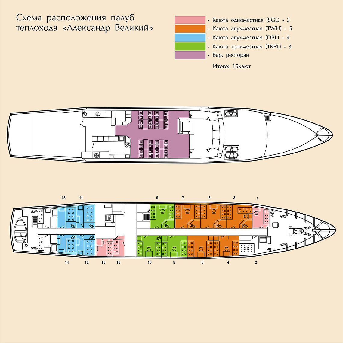 Теплоход "Александр Великий" - небольшой комфортабельный теплоход, совершающий круизы по озеру Байкал. Полностью реновирован в 2018 г. Преимуществом этого теплохода является возможность причалить практически в любой точке Байкала.