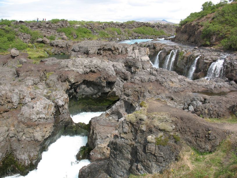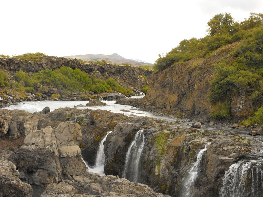 Рядом располагается водопад Хрейнфоссар (Hraunfossar).