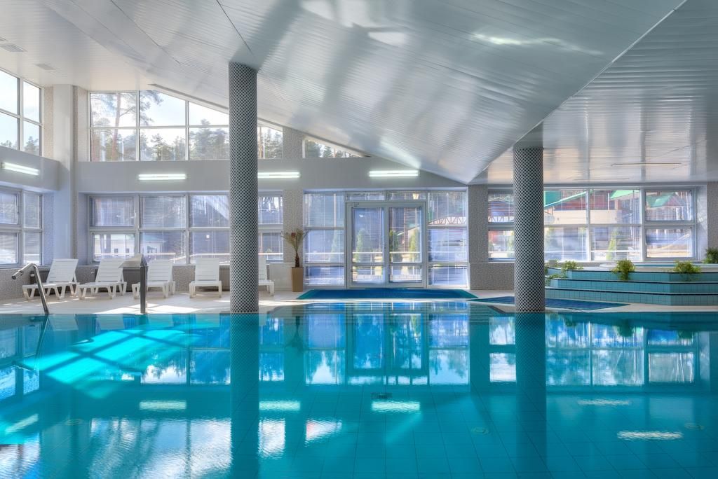 Аквакомплекс включает в себя финскую сауну, бассейн с подводными пушками и водопадами, подсветкой (12,5*6,5, глубина - 1,25 м).