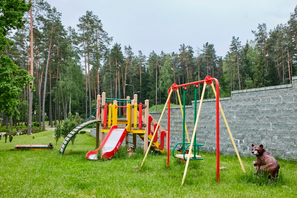 На территории загородного комплекса есть детская площадка, оборудованная детская комната, где ребенок может уделить время книжкам, раскраскам и играм!
