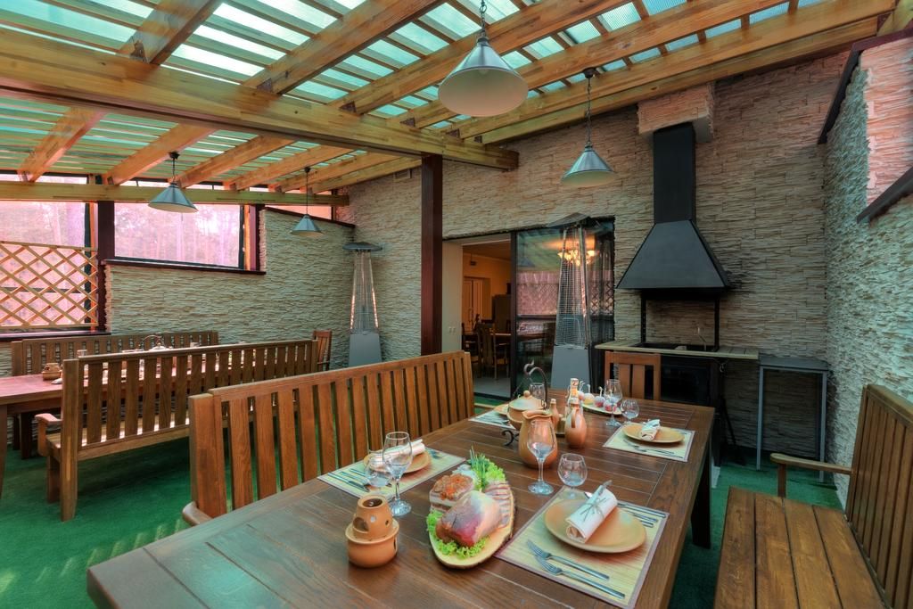 В загородном комплексе отдыха «Тайм Клаб» есть свой ресторан. Завтрак включен в стоимость проживания. Меню ресторана включает в себя широкий ассортимент. Обед и ужин гости смогут заказать на месте. Особенно понравится, что есть бар и выход на обустроенную террасу.