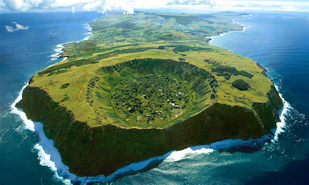 Экскурсия в церемониальный центр Оронго. Экскурсия начинается с подъема по склонам вулкана Рано Као до смотровой площадки на краю кратера, внутри которого находится красивейшее озеро с характерной растительностью. Затем посещается Церемониальная деревня Оронго – место, где производился выбор вождя острова на целый год с помощью рискованого соревнования. Все кланы острова собирались весной в многочисленных каменных «домах», ожидая прибытия священной птицы Манутара, чтобы выбрать Тангат Ману, человека-птицу. Длительность – 4 часа.