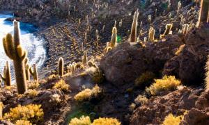 Поездка продолжается на солончаки Уюни с посещением деревушки Сан Хуан, археологического музея и далее до острова рыбаков, откуда с смотровой площадки видны огромные кактусы. Вы посетите Колчани, где добыча каменной соли производится вручную, как и много лет тому назад и далее в городок Уюни. Включено -завтрак, легкий обед По дороге к Великой соляной долине Уюни, Вы увидите, как добывается и обрабатывается соль в городе Кольчани. После этого Вы посетите место, которое называется «Глаза Воды», где можно увидеть геологические формирования местного ландшафта, а также можно будет понаблюдать за процессом обработки соли. Далее на острове Рыб, вы увидите несколько гигантских кактусов, а также сможете насладиться видом на соляную долину.