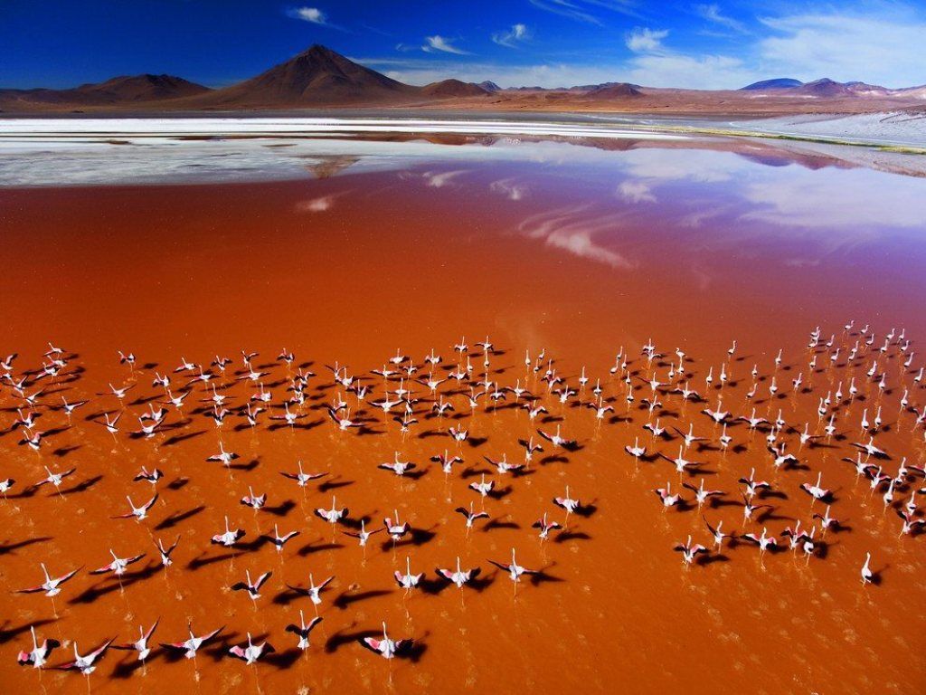 Экскурсия на озеро Лагуна Колорада - красное озеро, которое расположено на высоте 4400 м над уровнем моря в Боливии. Здесь обитает редкий вид фламинго — фламинго Джеймса, которые прилетают на это озеро в поисках особого вида планктона, имеющегося здесь в огромных количествах. Поездка заканчивается в Охо де Пердиз.