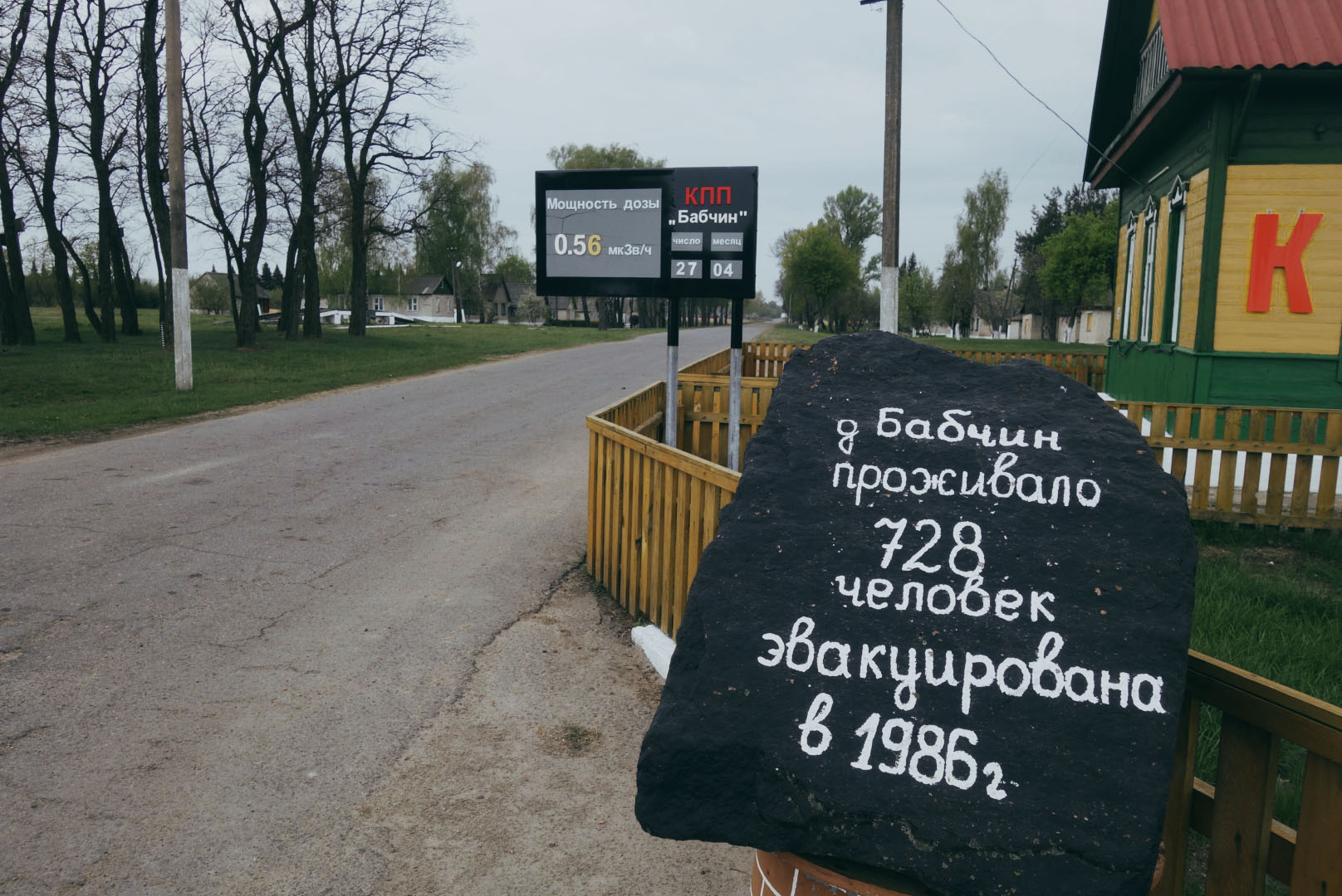 КПП «Майдан»: пункт расположен на границе 30-ти километровой зоны отселения, образованной в 1986 году. Налево и направо от КПП уходят ряды колючей проволоки.