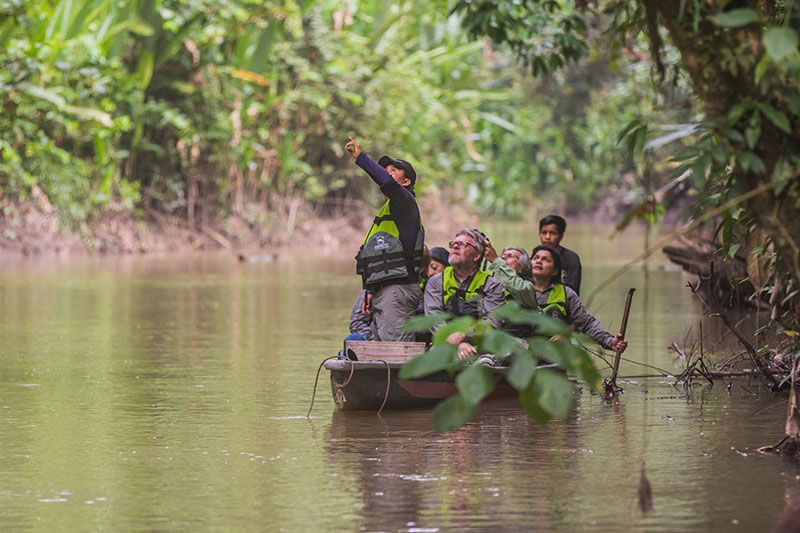На судне к нам присоединятся опытные местные гиды-натуралисты, которые кратко и информативно расскажут об эквадорской Амазонии; после этого у гостей будет возможность исследовать наш круизный лайнер и полюбоваться с солнечной палубы пейзажами тропических лесов, удивительной флорой и фауной региона пока мы скользим вниз по реке Напо.