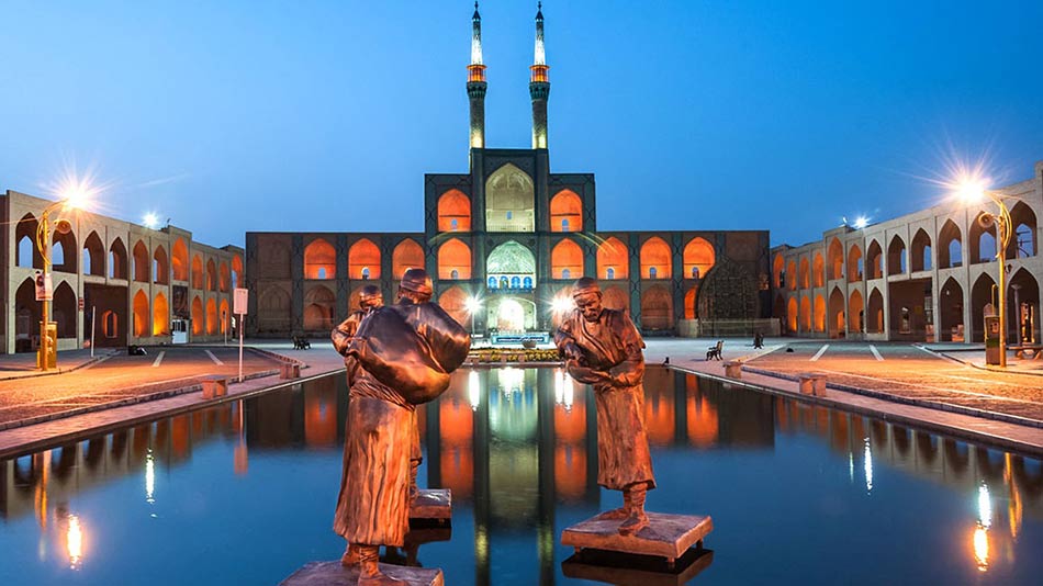 Утром посещение Язда, самого древнего населенного места планеты, центра древней религии зороастризма (огнепоклонничества), одного из красивейших и самобытных городов Ирана. Будучи в прошлом важным пунктом на караванных маршрутах Шелкового пути, Язд видел таких знаменитых путешественников, как Марко Поло и Афанасий Никитин. Архитектура города уникальна, местные дома веками строились в виде ветровых башен «бад-гиров» с круглыми куполами и своеобразной системой вентиляции, а также с хитроумными приспособлениями для сбора воды.