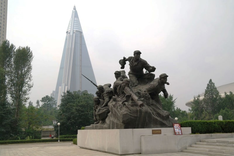 Это гигантская стела в виде факела на набережной реки Тэдон является символом идеологии, на которой основывается режим Северной Кореи.