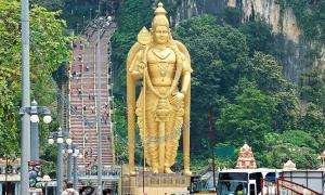 Пещеры Бату – природная достопримечательность Малайзии – находятся в 13 километрах от Куала Лумпура. Это одна из самых популярных индуистских святынь за пределами Индии. Всего насчитывается два десятка пещер. На фоне величественных гор поражает воображение золотая статуя индуистского Бога Муругана –вечного борца за мир и справедливость. Построенная в 2006 году, статуя высотой 42,7 м является самой крупной в мире.