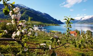 Хардангерфьорд (Hardangerfjord) известен багодаря яблоневым садам, цветущим на берегах фьорда, леднику Фолгефонна (Folgefonna) и водопаду Вёрингфоссен (Vøringfossen).