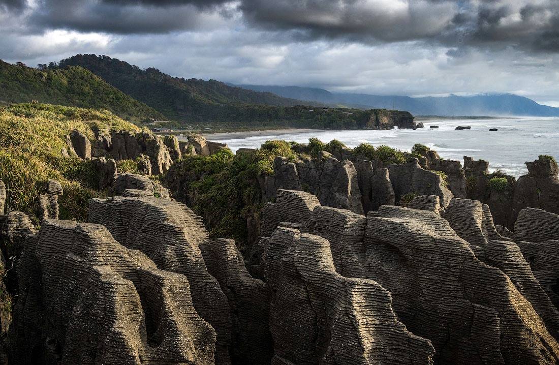 Еще одно чудо на нашем пути – скалы-блинчики Пунакайки. Они знамениты тем, что это древнейшие образования известняка, которые начали формироваться 30 миллионов лет назад. Под действием движения тектонических плит, скалы были «вытолкнуты» из моря, а вода изменила их форму так, что эти гиганты стали похожи на сложенные из каменных блинчиков. Здесь также можно увидеть такое редчайшее явление, как морские гейзеры – когда прибой фонтаном с огромной силой вырывается на большую высоту.