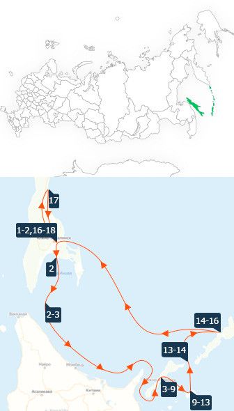 17:00 Прибытие на о. Шикотан, п. Малокурильское. Встреча в порту, трансфер в гостиницу, размещение, ужин.