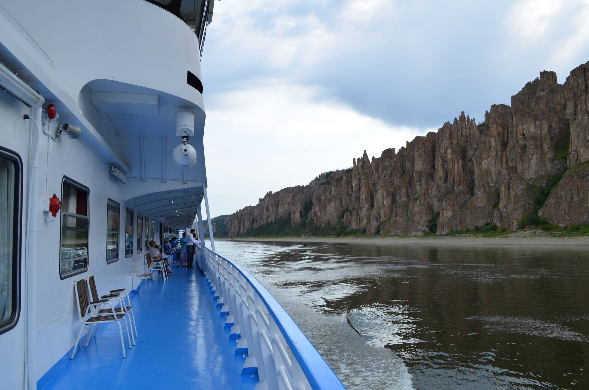 По ходу судна уже открываются издалека прекрасные виды на склоны Верхоянских гор. Ленские берега продолжают отступать, широчайшее пространство речной долины заполняют острова и протоки. В этой бескрайней речной стихии проплывают на многие сотни километров пустынные незаселенные берега.