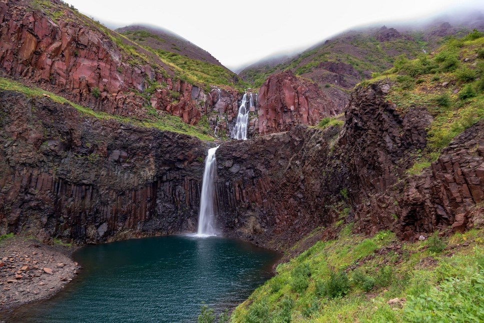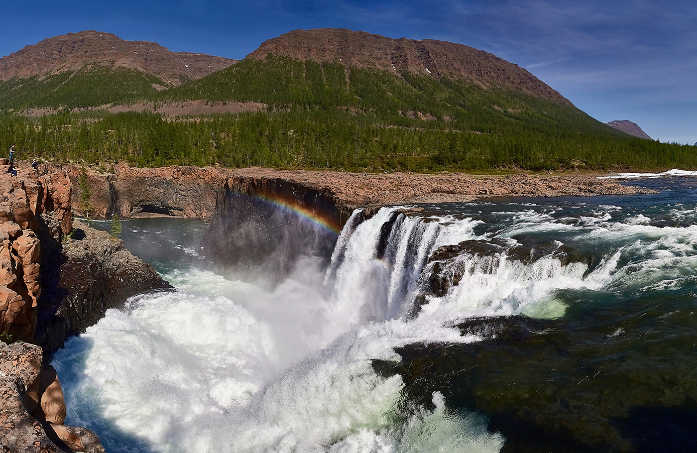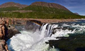 09:30 – Трансфер до тропы, ведущая к водопаду «Красные Камни» – один из самых доступных водопадов плато Путорана, часто его называют «плато Путорана в миниатюре» или «окно на плато Путорана». Свое название Красные Камни получили благодаря цвету породы, из которой сложены склоны ущелья. Скалистые берега озерца, в которое падают потоки воды, отличаются выраженным красно-коричневым оттенком. Водопад, украшающий ущелье, невелик по сравнению с такими водопадами плато Путорана, как Большой Курейский, Грандиозный, водопады на реках Оран или Канда. Но и он восхищает путешественников, особенно неискушенных северными красотами. Вода звенящим каскадом спускается по нескольким скалистым уступам и впадает в чистое озеро глубиной до 9 м.