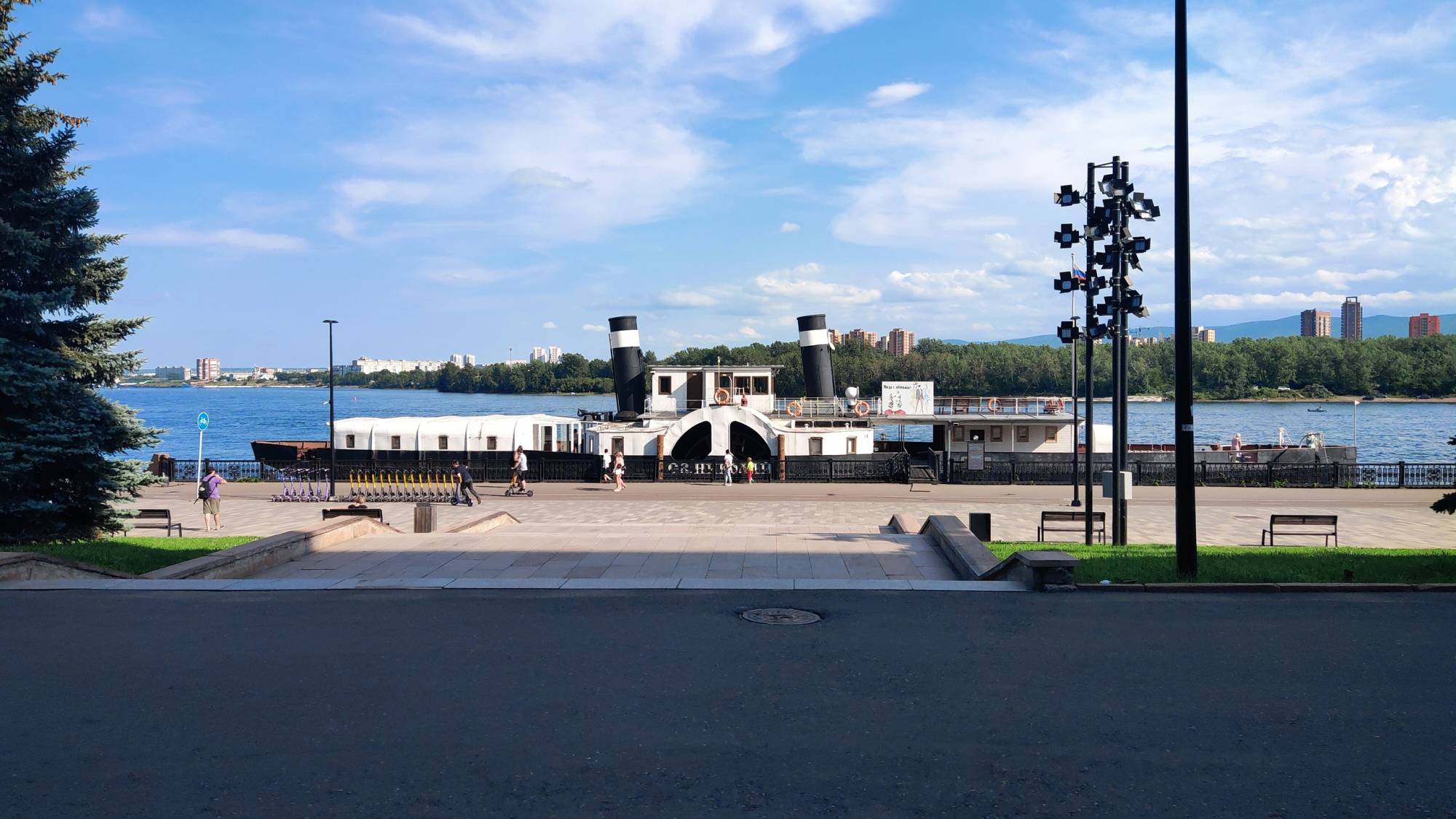 Корабль-музей, находящийся на вечной стоянке в городе Красноярске.