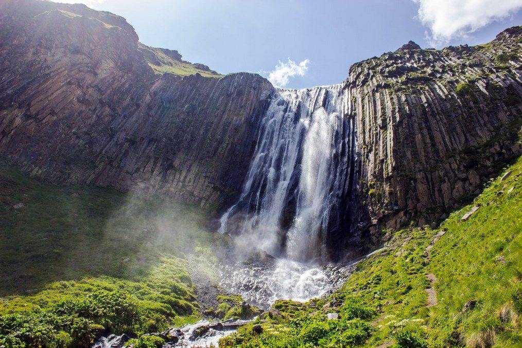 После сытного завтрака мы отправимся к водопаду «Девичьи косы» одной из визитных карточек Приэльбрусья. Наш маршрут проходит через лес, вы сможете полной грудью вдохнуть аромат хвои и трав. Если повезет, то пути вы можно увидеть горных туров или серн. На половине пути перед вами откроются панорамы горного массива Когутай, долины Донгуз-Орун, ледника «семерка», Накратау, Чегета и даже силуэт величественного Эльбруса. У вас будет возможность сделать потрясающие фото на фоне вершин и причудливых базальтовых стен, которые образовались из застывшей магмы во времена извержения Эльбруса тысячи лет назад
