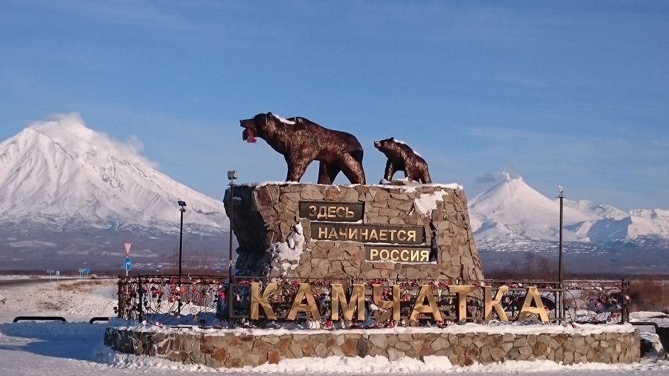 По дороге фотосессия на фоне вулканов Корякский, Авачинский и легендарной скульптурной композиции «Медведи. Здесь начинается Россия».