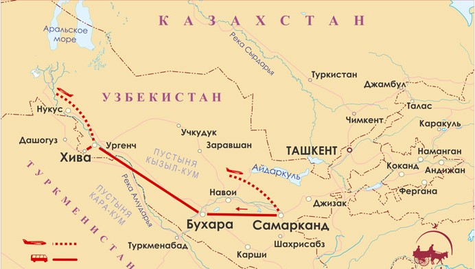 Экскурсия по Хиве (Ичан-Кале): комплекс Пахлавана Махмуда, который считается местом паломничества; крепость Куня-Арк –сердце Ичан-Калы, цитадель правителей и еще один «город в городе»; медресе и минарет Ислам Ходжи –символ города, самый высокий минарет Хивы (56,6 м), откуда открывается сказочный вид на весь город; дворец Таш Хаули – главная резиденция хивинских правителей; медресе Алакули-хана, где расположен музей истории медицины имени Авиценны; мечеть Джума –центральная и самая необычная мечеть Хивы с 213 резными деревянными колоннами, минарет и медресе Мухаммад Амин-хана – крупнейшее медресе Хивы и одно из самых крупных в Средней Азии.