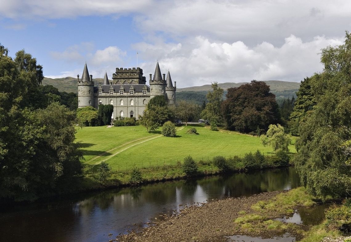 Посещение замка Инверари (InverarayCastle) - изящного замка «с французским акцентом». Это фамильное владение герцогов Аргайлов. Мебель на гнутых ножках, бело-голубые гобелены, расписанные вручную обои – во всем виден вкус и достаток, и не найти и следа традиционной шотландской суровости. Замок стоит на берегу удивительной красоты озера Лох Файн, в окружении прекрасного сада.
