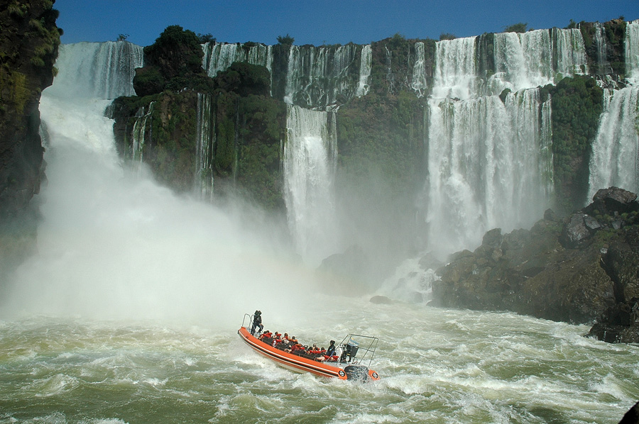 Водопады Фоз де Игуасу – это 275 огромных водных потоков, обрушивающихся со страшной высоты. Название водопадов в переводе с языка индейцев гуарани означает «большая вода». Водопады Игуасу расположены на реке Игуасу, на границе Бразилии с Аргентиной. Это великолепное, уникальное зрелище, созданное природой. Перед Вами открываются красивейшие пейзажи и водопады, низвергающихся с высоты 72 м в ущелье, называемое « Горло дьявола». Поражают, созданные руками людей, многочисленные тропинки и переходы, позволяющие наблюдать с очень близкого расстояния этот природный феномен и даже стоять у «Горла дьявола», в то время как на тебя падают миллиарды брызг воды. Грохот водопадов слышен на несколько километров. Со специально оборудованных площадок можно наблюдать за завораживающими водопадами как с бразильской, так и с аргентинской стороны.