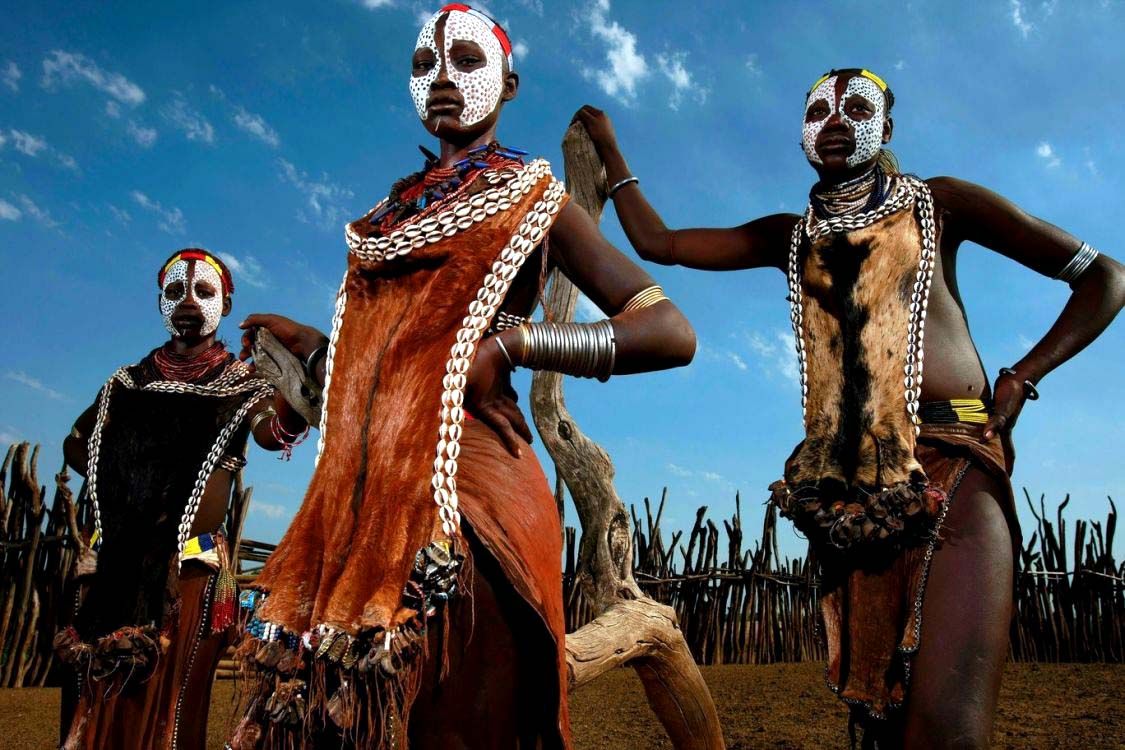 Завтрак в отеле. Переезд в Каро. Племя Каро, которое живет в местечке Мурулле, конечно, имеет свои отличительные черты. Их можно узнать по невероятной раскраске всего тела. В ход идет все, чем можно рисовать: глина, краски из овощей и других природных компонентов. Фантазия художников не имеет границ, раскрашенные тела буквально поражают воображение. Как и прически. Особенно мужские. Всем, побывавшим в гостях у Каро, трудно забыть эти стройные тела, покрытые узорами, и невероятную утонченную красоту и грацию, которая присуща этому немногочисленному народу.
